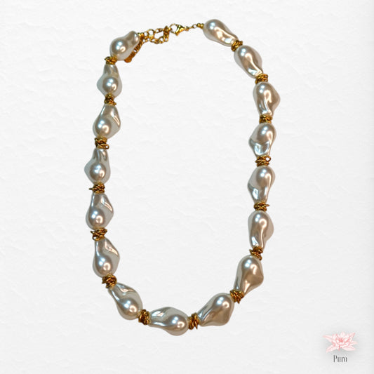 Colar Pérolas Com Detalhes Em Aço Inoxidável