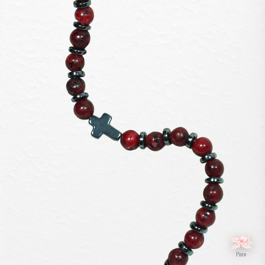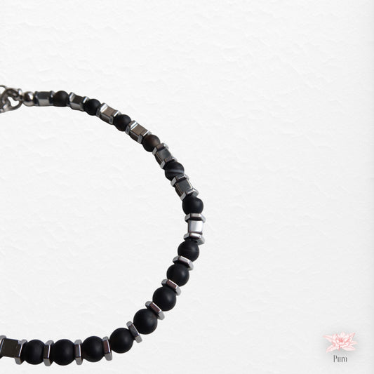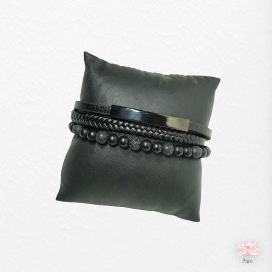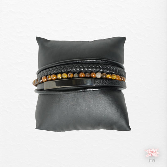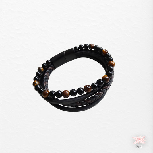 Pulseira Multicamadas em Couro e Pedras de Carvão