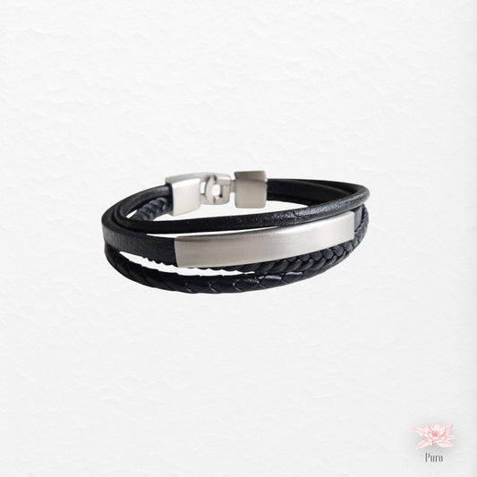 Pulseira Multicamadas em Couro e Detalhes Prateados