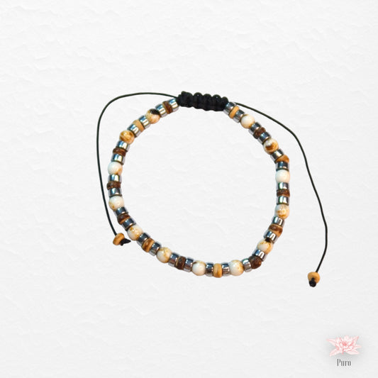 Pulseira em Couro e Pedras Olho de Tigre Tipo 1