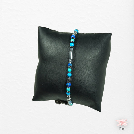 Pulseira Minimalista Com Detalhes Azuis e Prateados
