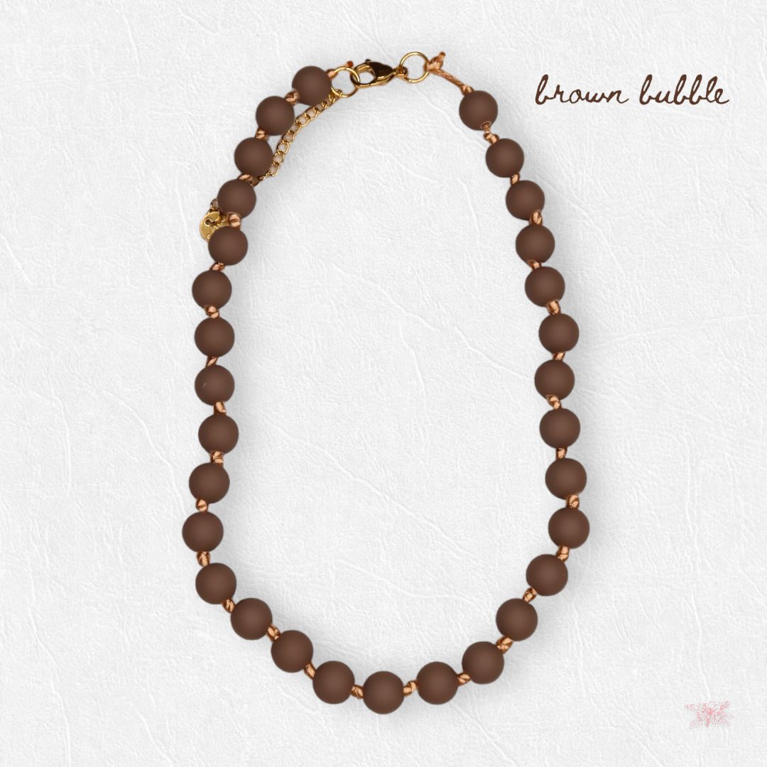 O nosso sucesso de verão está de volta! Colourful Bubble Necklace é um colar de bolinhas coloridas com pequenos nós entre elas.. Acabamentos em aço inoxidável.